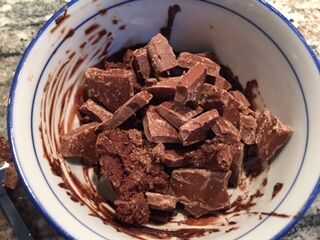 poner los pedacitos de chocolate en un tazón de poof de microondas y calor en un máximo de 20 segundos.