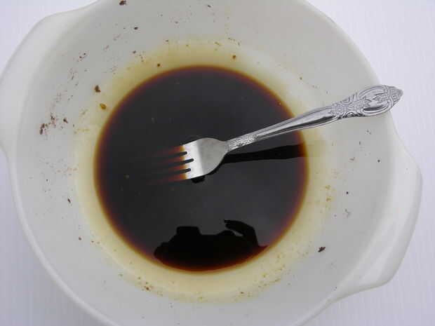 En un tazón pequeño, añadir agua hirviendo a melaza, mezclar para disolver. Añadir el aceite vegetal.