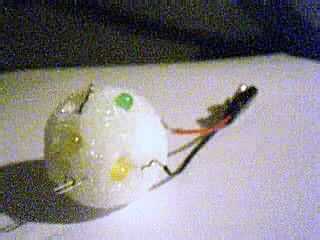 Tomar el circuito completo e incrustarlo en su bola con su patrón de iluminación en la mente.  Asegúrese de empujar los electrodos en bola, parece un peligro.  Pesar de que añadir un poco de sparke.
