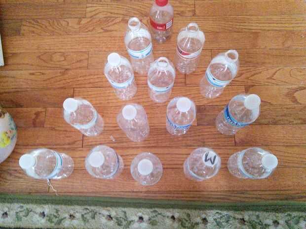 Coloque los pernos de bowling en este orden en un extremo de la sala el triángulo punta debe ser hacia el otro extremo de la sala.