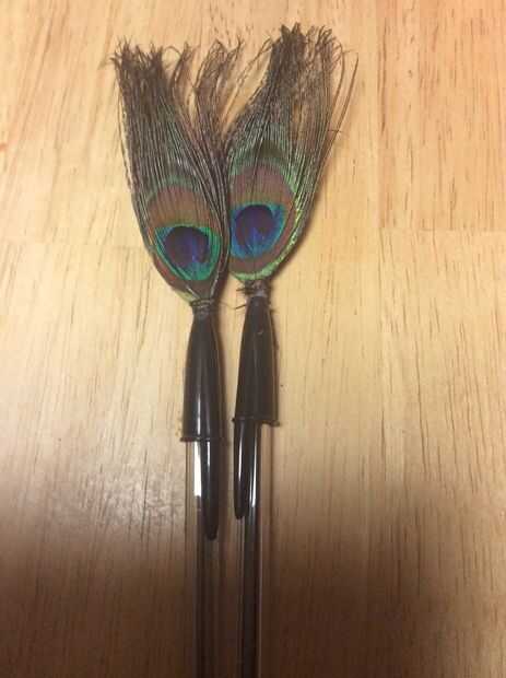 Y ahora el siguiente paso en la locura de pluma de pavo real...Esquema espinas de pluma sintética con oro!Si es tu primera vez visitando, estoy A. Laura Brody.Estoy haciendo plumas de pavo real imitación a volver a tapizar un Scooter eléctrica Jazzy