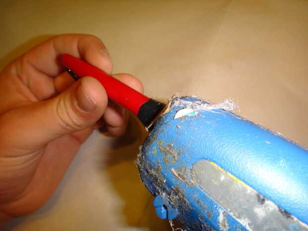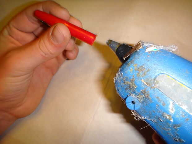 Llene la mitad superior del cohete (el uno con el gancho) con pegamento. Cuando se inicia saliendo de la parte superior, dejar de agregar pegamento y atornillar las dos mitades de la pluma hacia atrás. Cuando el pegamento que salió de la parte superior se enfría hasta el punto de sólo ser gomoso, la forma en un agradable, incluso del cono. (No forma lo anterior a menos que quieras quemaduras.) Este pegamento debe ayudar a mantener el cohete rompa cuando cae en concreto o en una roca después de un vuelo alto.