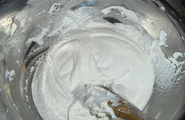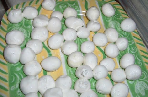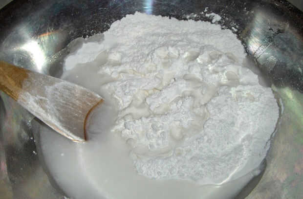 Mezclar 200 g de harina con la sal y verter en agua tibia un poco a la vez, revolviendo la mezcla bien hasta que espesor y forma de poder. Si es necesario, cuando la mezcla es demasiado agua y escurrimiento, agregue 2-3 cucharadas Harina