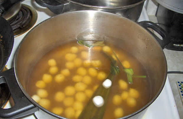 Caída de bolas en el bote, una vez flotando, se cocinan. Baje el calor
