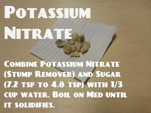 Nitrato de potasio (para instrucciones sobre cómo hacer esta parte, visite mi cuenta de bricolaje favorita, El rey de aleatorio. sigue todos sus pasos en la preparación pero no utiliza ningún hilo, simplemente deje que la solución de solidificar y dorar un poco. También tiene sus medidas en gramos pero he convertido a tsp.)