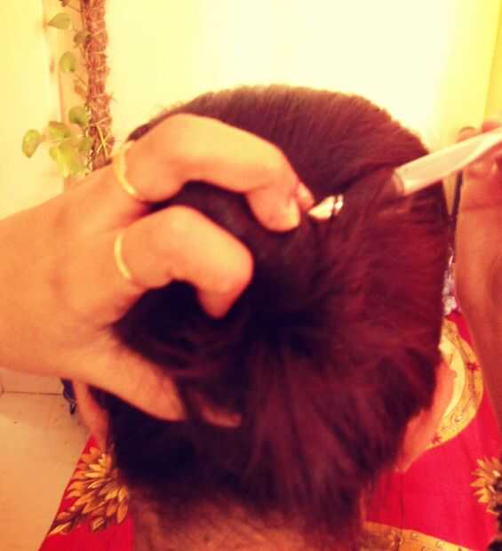 Paso 5: Tomar una pluma y remeterlo por debajo el moño trenzado.