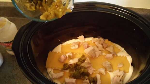 Coloque 1/3 taza de chile verde sobre Turquía.