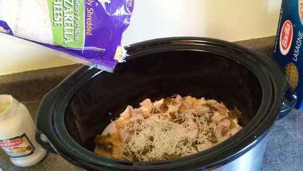 Repetir y continuar ingredientes capas, terminando con salsa.