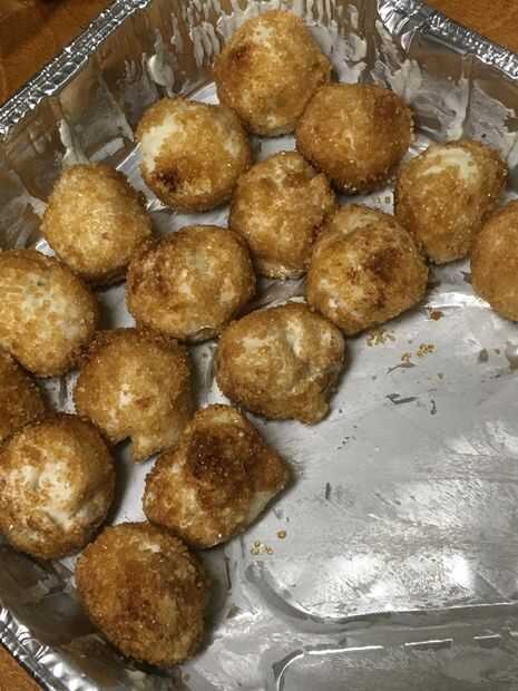 Ponga las bolas terminadas en una bandeja engrasada. Usé algunos de la mantequilla derretida para engrasarlo. La cacerola debe ser lo suficientemente grande como para acomodar todos los bollos. No hagas demasiado grandes o las galletas se expandirán demasiado (que desea ser capaz de comer fácilmente los besos jajaja).
