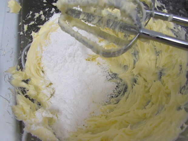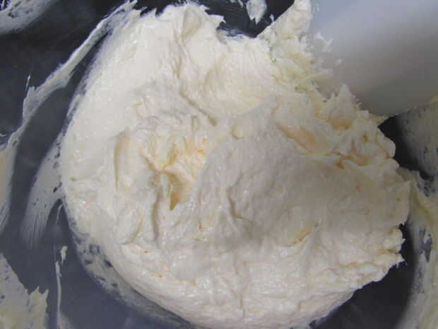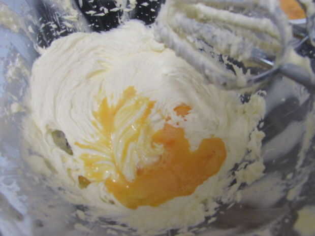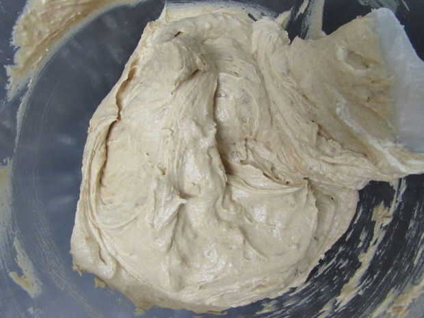 Mientras que la impermeabilización de la masa, hacer la masa de café batiendo la mantequilla y el azúcar con una batidora de mano hasta que esté ligero y esponjoso (cuadro 2). Vierta los huevos batidos en partes pegando la mezcla para evitar que se separen.