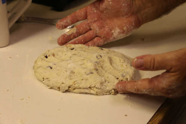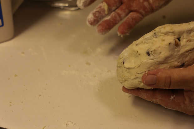Utilizar las manos, (ayuda a enharinar las manos primero.), terminar incorporando la mezcla amasando ligeramente la masa por simplemente doblarlo sobre sí mismo varias veces. Un par de minutos debe hacerlo.