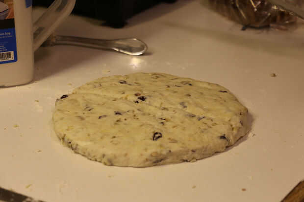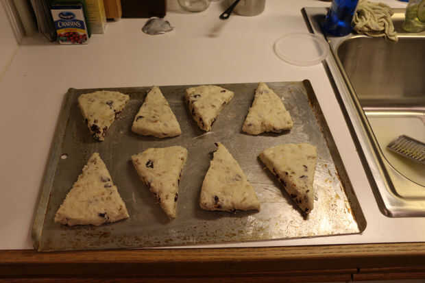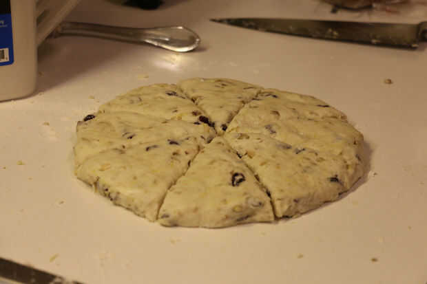 Con un cuchillo afilado, corte la tarta en dos mitades hasta tener 8 piezas iguales y Coloque suavemente en charola engrasada, dejando un buen espacio entre las piezas.