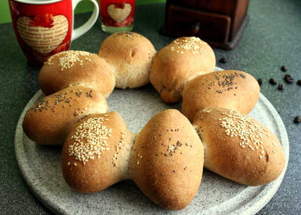 Poner los rollos en una bandeja de horno y dejarlos resto cubierto por otros 20 minutos. Espolvorear con semillas de chía o sésamo y hornear a 250 C durante 10 minutos. Rocíe los lados y la parte inferior del horno con agua para crear vapor. Reducir el calor a 220 C, deje que el vapor hacia fuera y el cocer al horno durante otros 20 minutos.