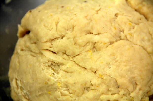 - Agregue la mantequilla, 2c de la harina, sal, cáscara de naranja y cardamomo. Separe el guardar huevos las yemas y añadir las claras a la mezcla.