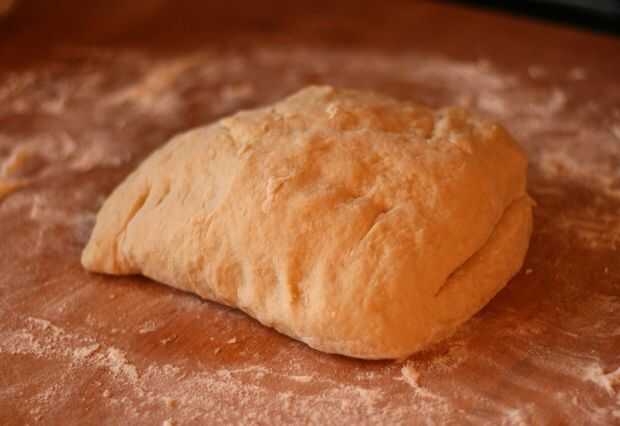Tirar un puñado de harina en la superficie de trabajo y empezar a amasar la masa. Seguir trabajando hasta que sea elástica. Esto debe tomar unos 8 minutos.