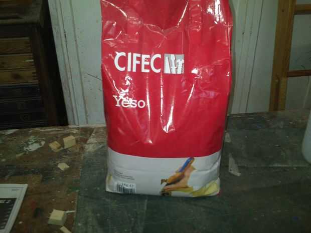 5 kilos de yeso en polvo (se puede usar cemento, pero considero el color gris, es mas feo el blanco...),