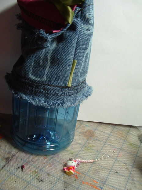 Ahora viene la costura en parte de la diversión. Dibujé un pequeño diagrama de la puntada que utiliza, tipo de una puntada de manta. Honestamente sólo podía coser sobre el borde de la botella, que estaría bien. Iba a coser la cinta sobre el borde, pero terminé justo pegado en su lugar, ya que era mucho más fácil. Antes 3 en 1 de la baliza avanzado pegamento artesanal, pero a 3 o 5 minutos epoxy funcionaría igual de bien si te no se pueden encontrar que pegue y probablemente quedaría mejor. Y eso es todo!