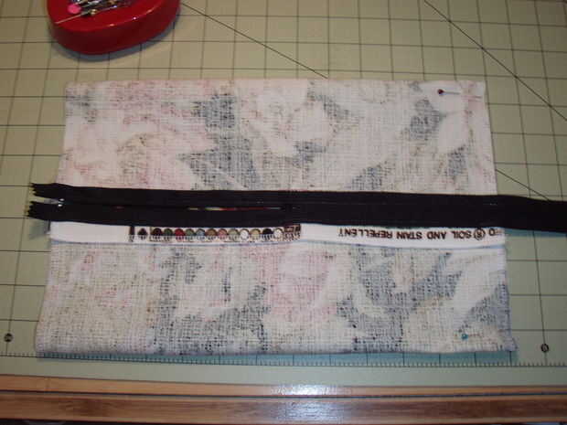 Pone el tubo de tela con parcialmente abierta la cremallera hacia arriba. (Abrir porque aprendí la manera dura). Coser los dos lados restantes cerrados. Usted puede coser sobre cierres de plástico (lentamente), pero saltar por encima de cualquier pieza metálica.