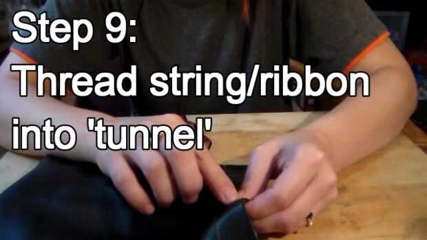 La cadena o cinta a través del túnel y al otro lado del hilo de rosca. Puede atar nudos o agregar cuentas.
