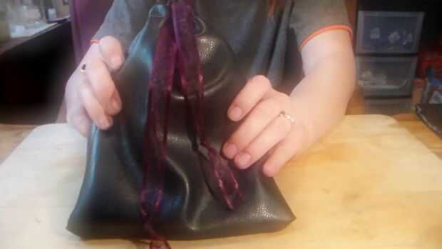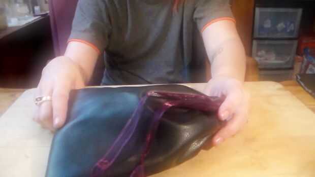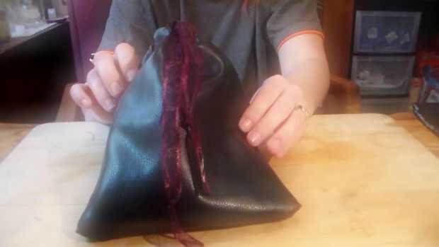 Bolsa con forro de manga de la chaqueta de cuero (10 / 10 paso)