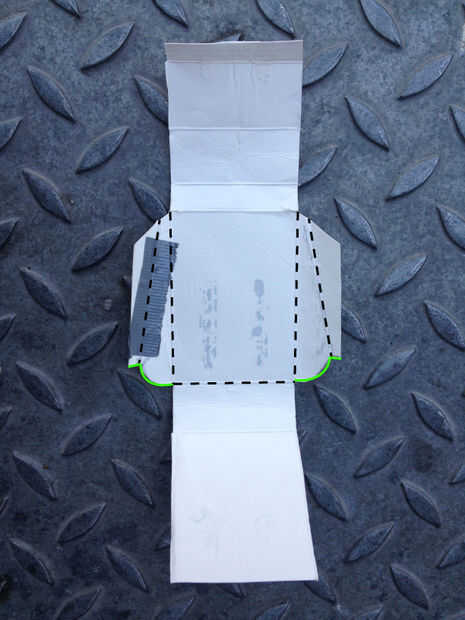 La línea de neón verde es la línea trazada en el paso dos que necesita ser cortado con tijeras.