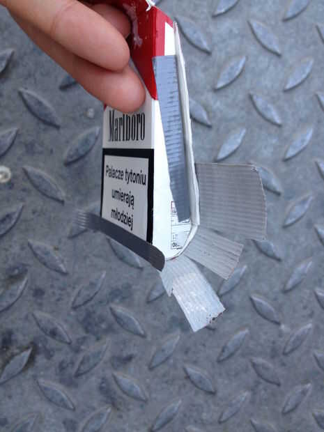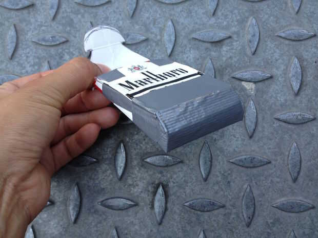 Tenga cuidado de no cortar en la cara inferior de la caja. Pueden poner algo como un pedazo de madera en la caja para cortar y detener el cuchillo de cortar a través de la parte inferior de la caja.