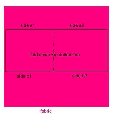 5. doblar por la mitad y coser (o sarga) los lados juntos (coser lado a1 al a2 y b1 a b2). Vea la ilustración 2. Ahora debería tener un saco con una tapa de borde crudo.