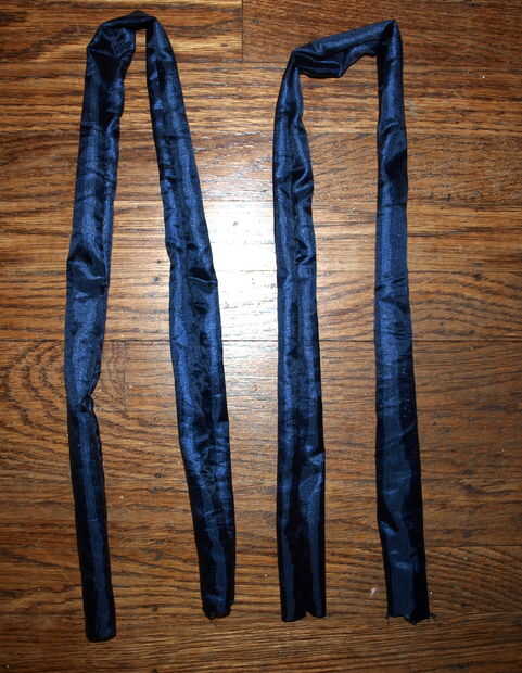 1. coser los 2 tubos de la tela sedosa de dos pulgadas más largo que las asas y cintas que desea en el bolso (Foto #1). Del estilo usted en esto. Había cosido a dos tubos con el lado equivocado de la tela hacia fuera y luego voltea les lado derecho hacia fuera. Mina son alrededor de 1,5 pulgadas de espesor. Es una tela flexible, flexible, por lo que la perfección no es 100% necesario.