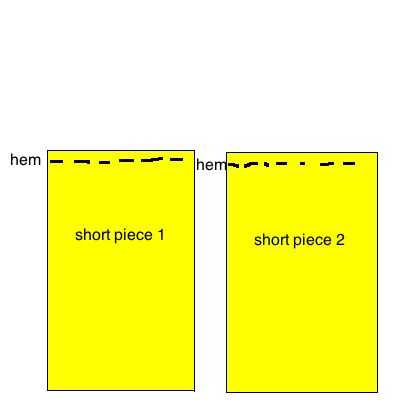 4. ahora usted tiene la pieza todavía largo original (que previamente pusiste a un lado) y el lado cosido juntos más corto. Es hora de ponerlos juntos.