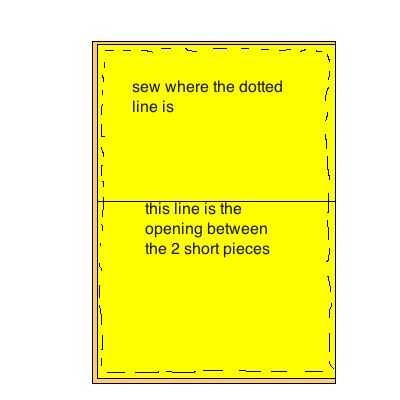 2. Coloque la pieza más corta junto cosido en la parte superior la pieza larga "lado equivocado" para arriba.