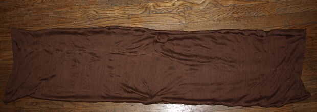 1. Coloque la pieza larga de tejido de bufanda en el piso (o una mesa de coser si eres fantasía) "derecha" para arriba.
