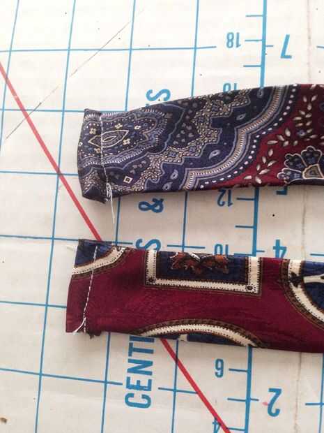 Con los extremos estrechos de dos de sus lazos, corte aproximadamente cinco pulgadas de uno y unas 12 pulgadas de otro. Dobladillar los bordes de cada uno.