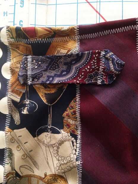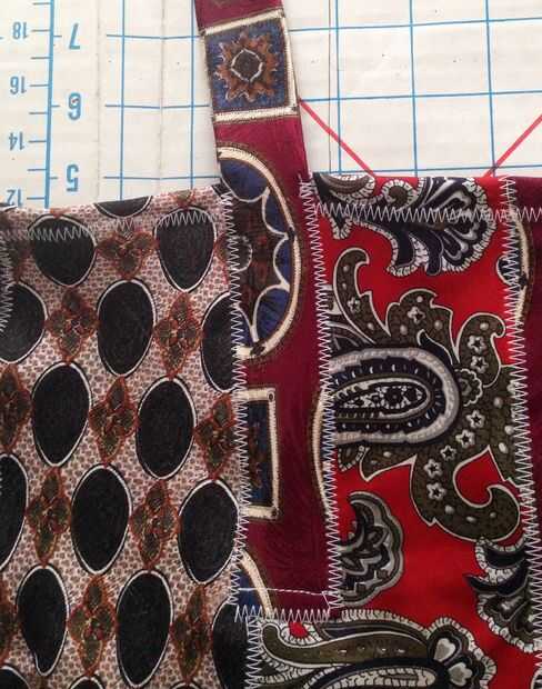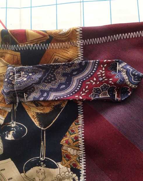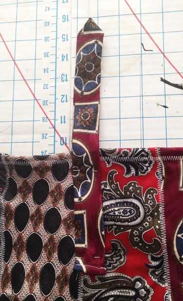 Pone uno más corto hacia los lados un par de pulgadas por debajo del dobladillo superior de su panel frontal (directamente en el centro), prender y coser con una zig zag puntada.