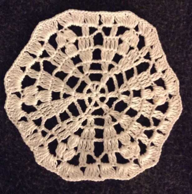 --Le sugiero que haga la última ronda usando doble puntadas para añadir fuerza a la aleta. Si observas mi servilleta, la ronda exterior es solo doble puntada después de puntada doble.