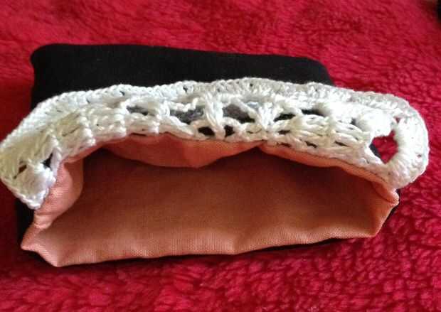 Empuje la tela del forro en el bolsillo de la tela exterior antes de coser alrededor del borde de la boca de la bolsa de modo que las dos partes (exterior y forro) no vienen aparte.