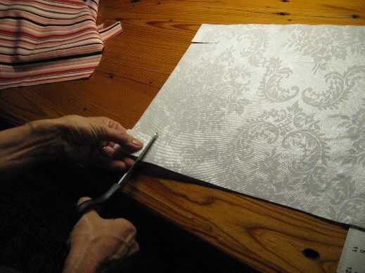 2. corte dos 12 "x 14" pedazos de la tela del forro. Cortar una 2 "x 2" cuadrada de la parte inferior izquierda y abajo a la derecha.