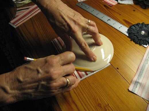 4. doble los pedazos de aleta a la mitad (6" lados juntos). Usando un plato como guía, trace una curva a las piezas de aleta.