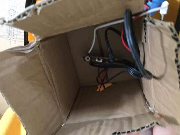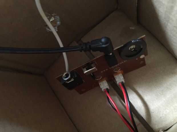 Poner todo en la caja de protección salvo el conector aux-in para el teléfono y la batería de 9V caso aplasta cualquier cosa o correa (batería de v a la caja con el sujetacables.