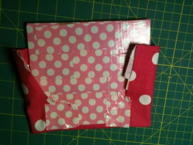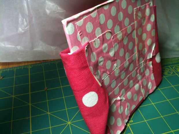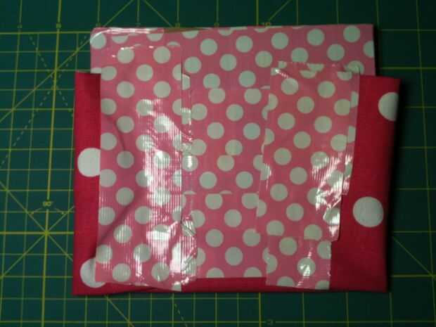 Cazar algo de tela que coincida con su cinta. La tela no tiene que ser grande, debe ser sólo lo suficientemente grande como para formar un bolsillo en el frente y envolver en la parte posterior. Para hacer la parte superior de su doblez agradable, tela mira hacia atrás y conducto de cinta adhesiva para crear un "dobladillo". Coloque a la tela sobre la base de cartón, a partir de unas cuantas pulgadas hacia abajo desde la parte superior de la base. Doblar a la tela sobrante en la parte inferior de la espalda, y conducto de cinta adhesiva a la base. Cinta adhesiva la parte inferior de los lados en la parte posterior. Ajustar los lados superiores de la tela para crear la profundidad deseada del bolsillo. Entonces, conducto cinta las partes superiores a la parte posterior de la base en la posición deseada.