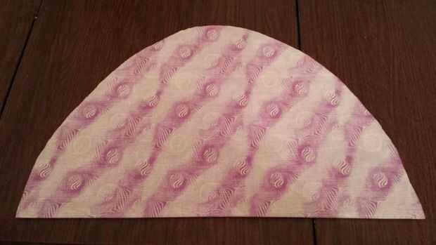 Coloque la tela principal y dibuja un semicírculo mide 23" en la parte superior y 14 1/2" arriba a abajo. Cortar dos piezas.