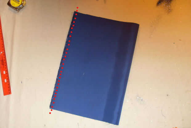 Doble a la tela por la mitad así que miden 12 "x 8" y coser a lo largo de la línea roja punteada. Si usted es pegado, pegar el interior de la tela a lo largo de la línea de puntos