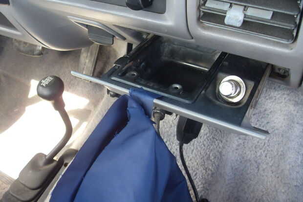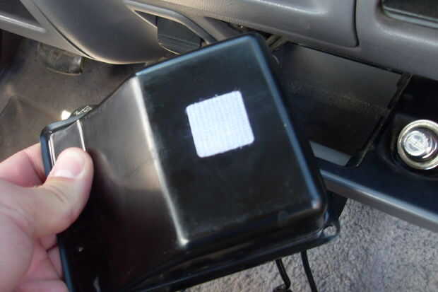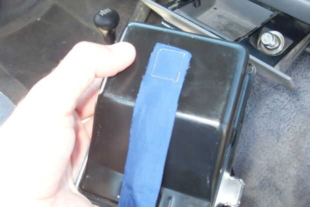 Pegué un trozo de Velcro en mi Cenicero para unir mi bolsa a él. He utilizado mi cenicero asi pude doblar para arriba cuando no la estoy usando. Si utilizas tu cenicero, consulte el siguiente paso para las instrucciones de la caja de guante.