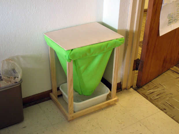Aquí es una bolsa de gusano de color verde lima, viviendo en la oficina de Catherine Girves, quien fue muy instrumental en el desarrollo de este proyecto. Es la Directora de la Asociación de enriquecimiento del área de la Universidad de Columbus, Ohio y organizó un equipo de voluntarios para la construcción de muchas de estas bolsas de gusano para "semilla" de nuestra comunidad local con las maravillas de la lombricultura. Gracias Catalina!