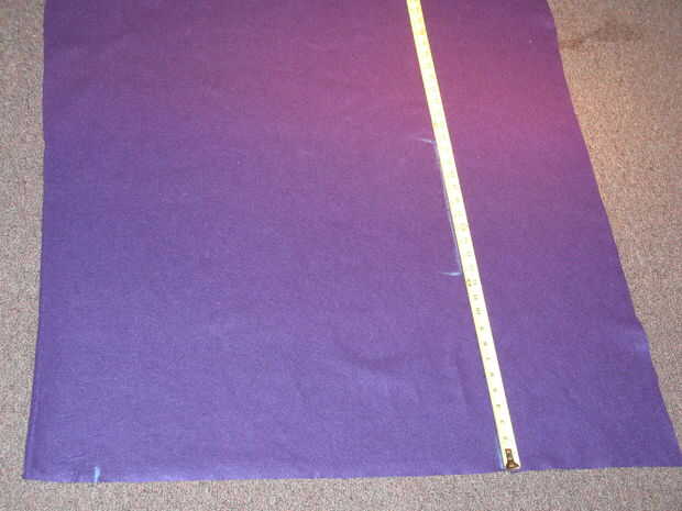 Ahora que la tela se dobla encima, vamos a diseño el patrón visto en la imagen anterior. Empezar marcando 35" sobre desde el borde más largo (el uno que es 42"). Luego marque 3" abajo, a lo largo del otro borde (uno que es 36" porque la tela se dobla encima). La marca 24" por ese mismo borde. Luego coloque la regla o cinta métrica como se ve en esta foto para marcar más de 12,5" y 24,5".