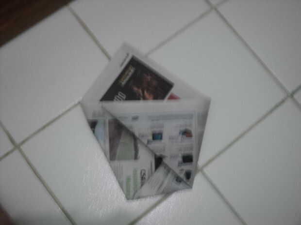 desarrollé este cubo para reciclar periódicos. Puede que no sea muy impresionante, pero es fácil y puede hacerse rápidamente. He utilizado para residuos vegetales, es absorbente y puede ser compostado. Es muy fuerte si con dos o más documentos. Desar