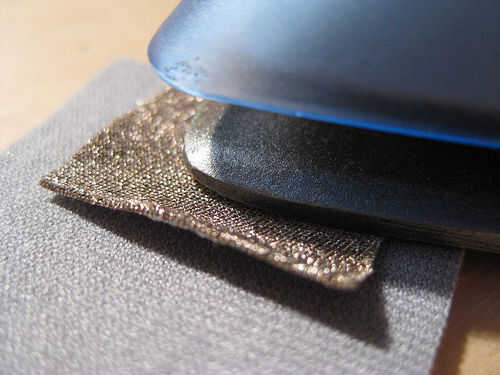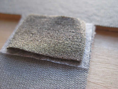 Con una plancha a fuego medio-alto (prueba en un retal para conseguir la temperatura correcta)-de hierro en las piezas de tela conductiva para el neopreno. El tejido conductor cambia de color bajo el calor y hasta cierto punto esto está bien, pero si hace demasiado calor se queman y conseguir quebradizo y no es elástico.