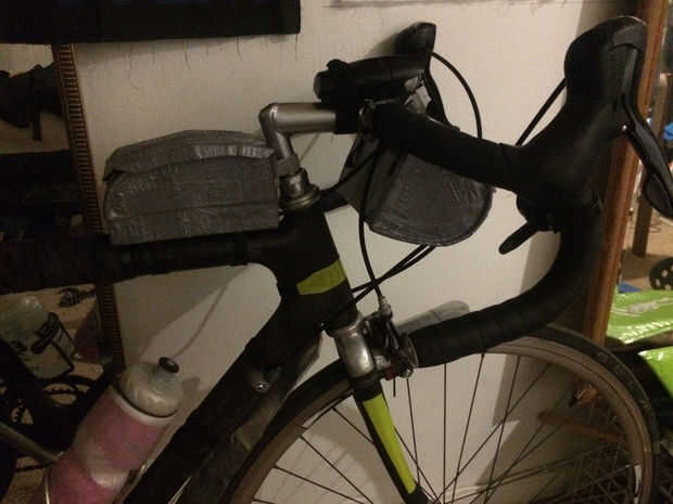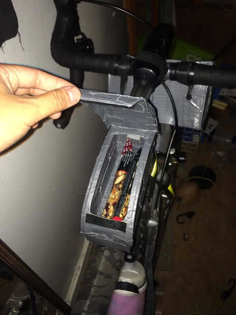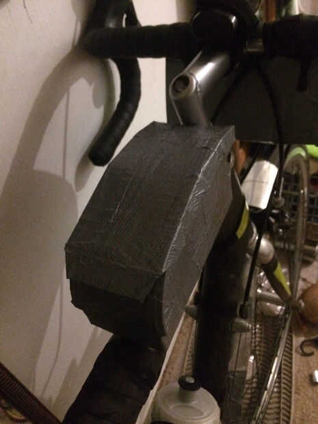 Esto es un arte intermedio y útil para hacer con cinta adhesiva y te hará sonreír una vez que termine. Pero antes de hacerlo, usted puede practicar más con cinta adhesiva. La bolsa va alrededor de las manijas de la bici, así que usted puede almacenar