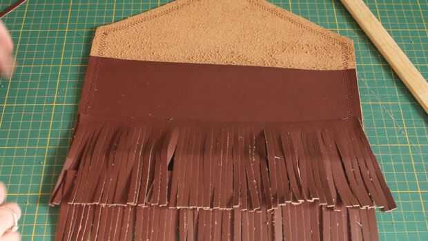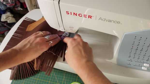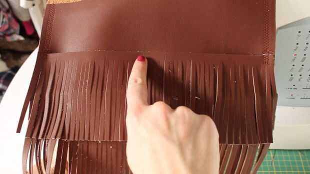 Coser a cada lado de la bolsa (solo la 1/2 pulgada no cortar en la parte superior de cada panel de fringe)