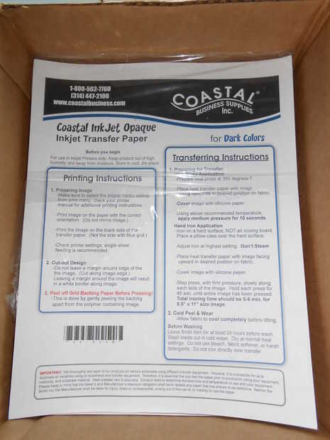 Imprima sus diseños en papel de transferencia de calor. Tomé una foto de la clase que utilicé. Era para telas oscuras.
