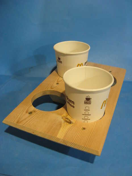 I había marcada la ubicación de las canalizaciones verticales, había pretaladrado dos agujeros por elevador y utiliza tornillos de latón para sujetar a la bolsa. Un pequeño lijado usando papel de lija de grano 120 y listo... una bolsa café reutilizable de desechos. Un divertido proyecto de carpintería poco que ayuda el medio ambiente.